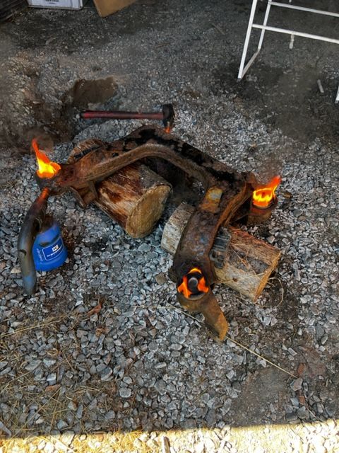 When everything was off the car, started by removing old rubber bushings. Without a press this meant propane torch and burning them off. Took awhile longer but did get them out.