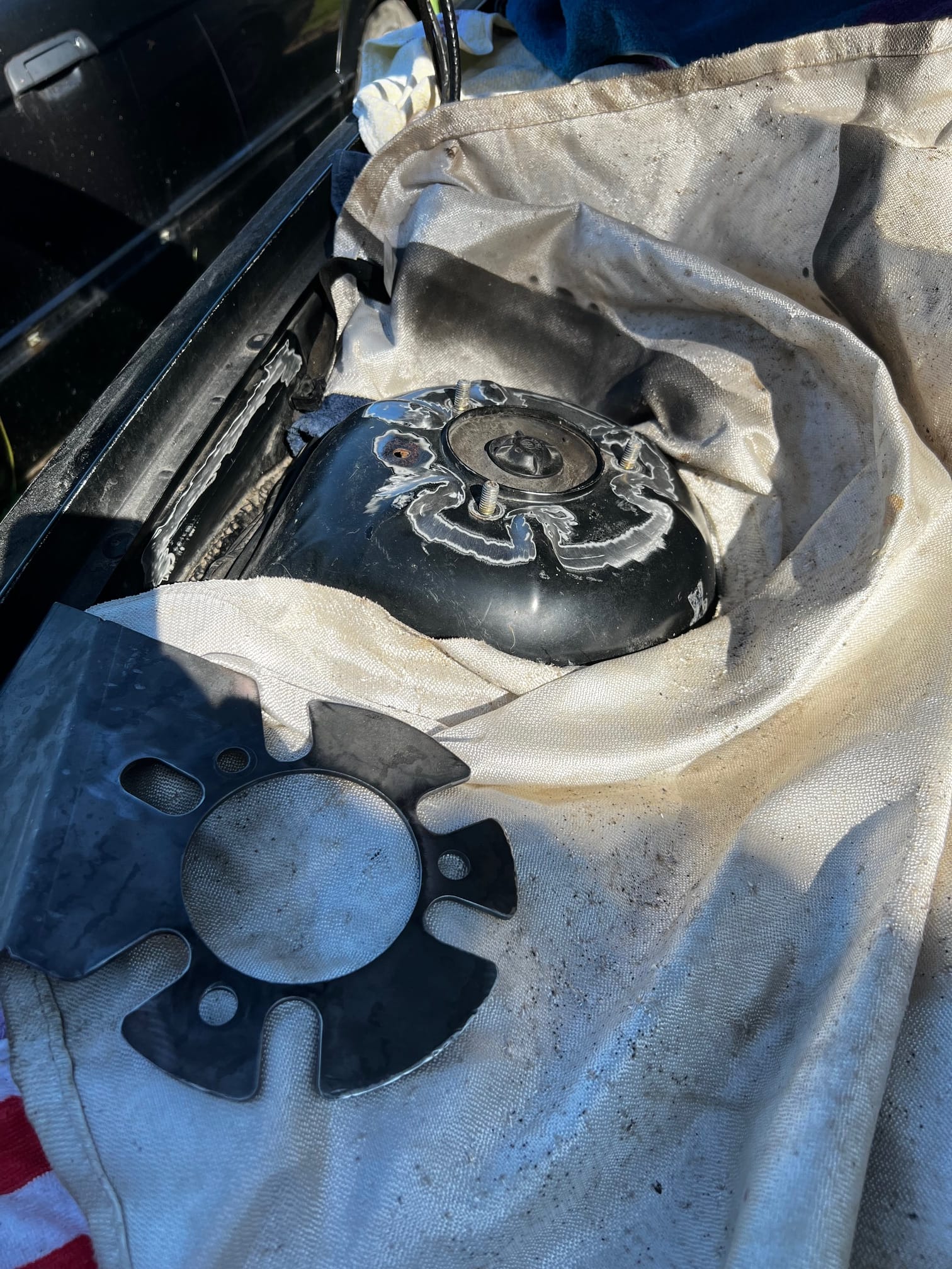 In the photo you can see I still have strut in place. This is to locate the re-enforcement plate correctly in place. I bolted it in place and tack welded it with strut in place, but I also had no intention to use these again. Other option would be to just have scrap top hat that you could torch with welding. Remember to clean surfaces well from paint and mil scale before welding.
